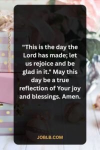 “This is the day the Lord has made; let us rejoice and be glad in it.” May this day be a true reflection of Your joy and blessings. Amen.