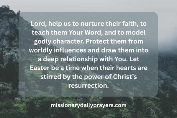 Lord, help us to nurture their faith, to teach them Your Word, and to model godly character. Protect them from worldly influences and draw them into a deep relationship with You. Let Easter be a time when their hearts are stirred by the power of Christ’s resurrection.