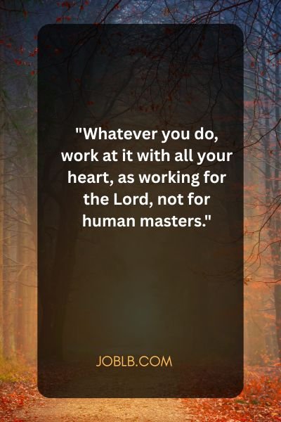 “Whatever you do, work at it with all your heart, as working for the Lord, not for human masters.”