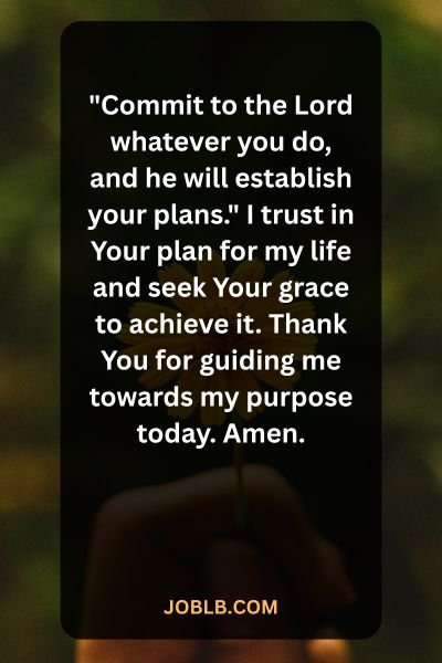 “Commit to the Lord whatever you do, and he will establish your plans.” I trust in Your plan for my life and seek Your grace to achieve it. Thank You for guiding me towards my purpose today. Amen.