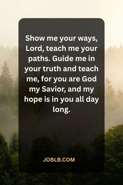 “Show me your ways, Lord, teach me your paths. Guide me in your truth and teach me, for you are God my Savior, and my hope is in you all day long.” Guide my decisions today and help me to walk in Your truth. Amen.
