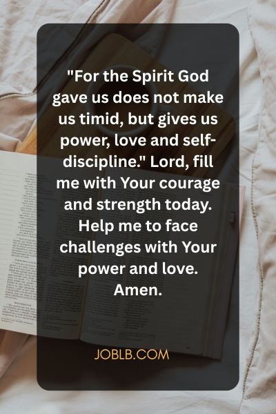 “For the Spirit God gave us does not make us timid, but gives us power, love and self-discipline.” Lord, fill me with Your courage and strength today. Help me to face challenges with Your power and love. Amen.