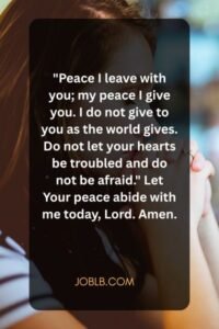 “Peace I leave with you; my peace I give you. I do not give to you as the world gives. Do not let your hearts be troubled and do not be afraid.” Let Your peace abide with me today, Lord. Amen.
