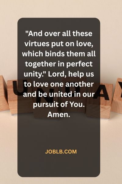 “And over all these virtues put on love, which binds them all together in perfect unity.” Lord, help us to love one another and be united in our pursuit of You. Amen.