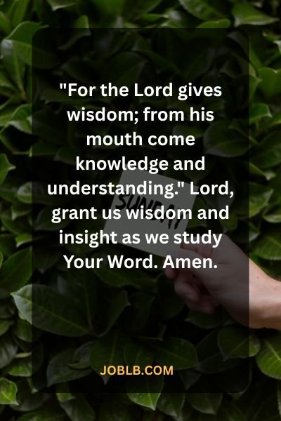 “For the Lord gives wisdom; from his mouth come knowledge and understanding.” Lord, grant us wisdom and insight as we study Your Word. Amen.