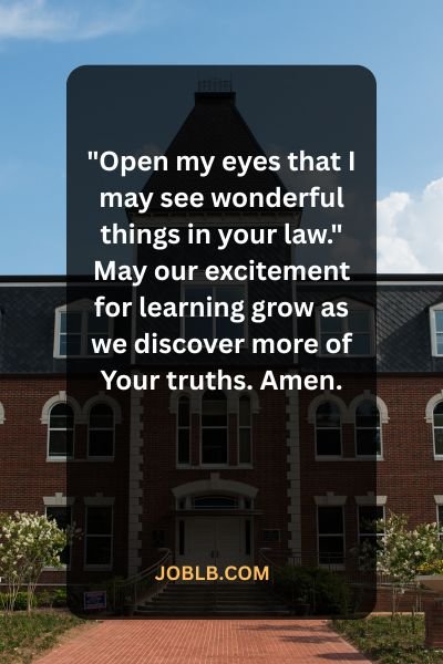 “Open my eyes that I may see wonderful things in your law.” May our excitement for learning grow as we discover more of Your truths. Amen.