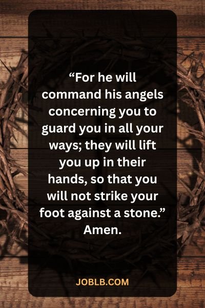 “For he will command his angels concerning you to guard you in all your ways; they will lift you up in their hands, so that you will not strike your foot against a stone.” Amen.