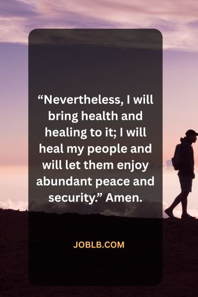 “Nevertheless, I will bring health and healing to it; I will heal my people and will let them enjoy abundant peace and security.” Amen.