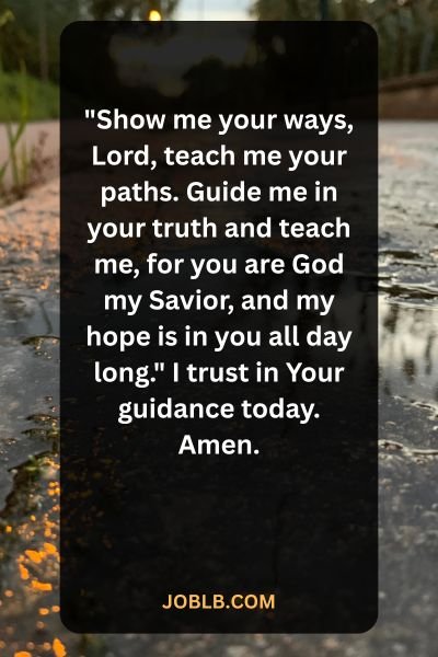 “Show me your ways, Lord, teach me your paths. Guide me in your truth and teach me, for you are God my Savior, and my hope is in you all day long.” I trust in Your guidance today. Amen.