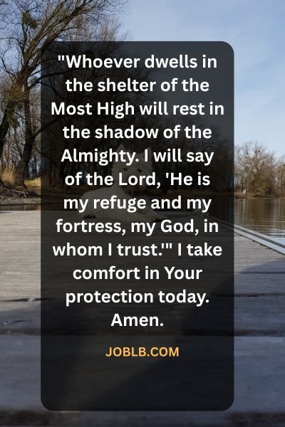 “Whoever dwells in the shelter of the Most High will rest in the shadow of the Almighty. I will say of the Lord, ‘He is my refuge and my fortress, my God, in whom I trust.'” I take comfort in Your protection today. Amen.