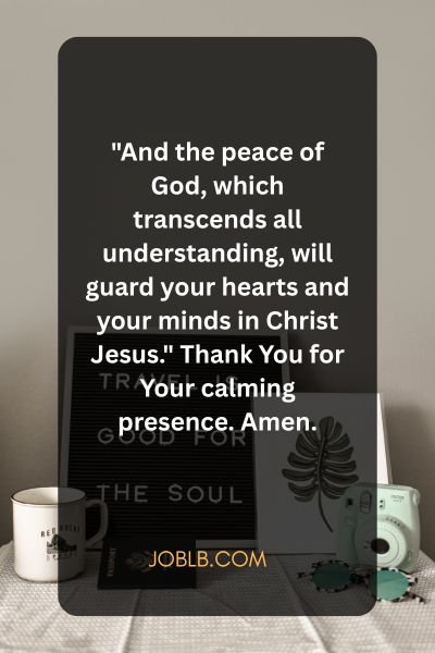 Heavenly Father, I ask for Your peace to fill my heart and mind today. In moments of stress or anxiety, remind me of Your presence. Let Your peace, which surpasses all understanding, guard my heart and mind. May I walk in serenity, knowing that You are in control of all things.